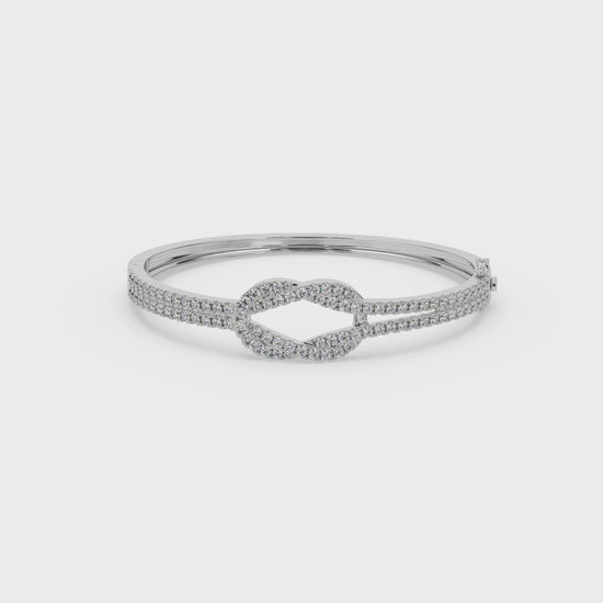 Two mirrored curves meet in balance — the Affinity Bangle captures light, form, and connection with subtle brilliance.
