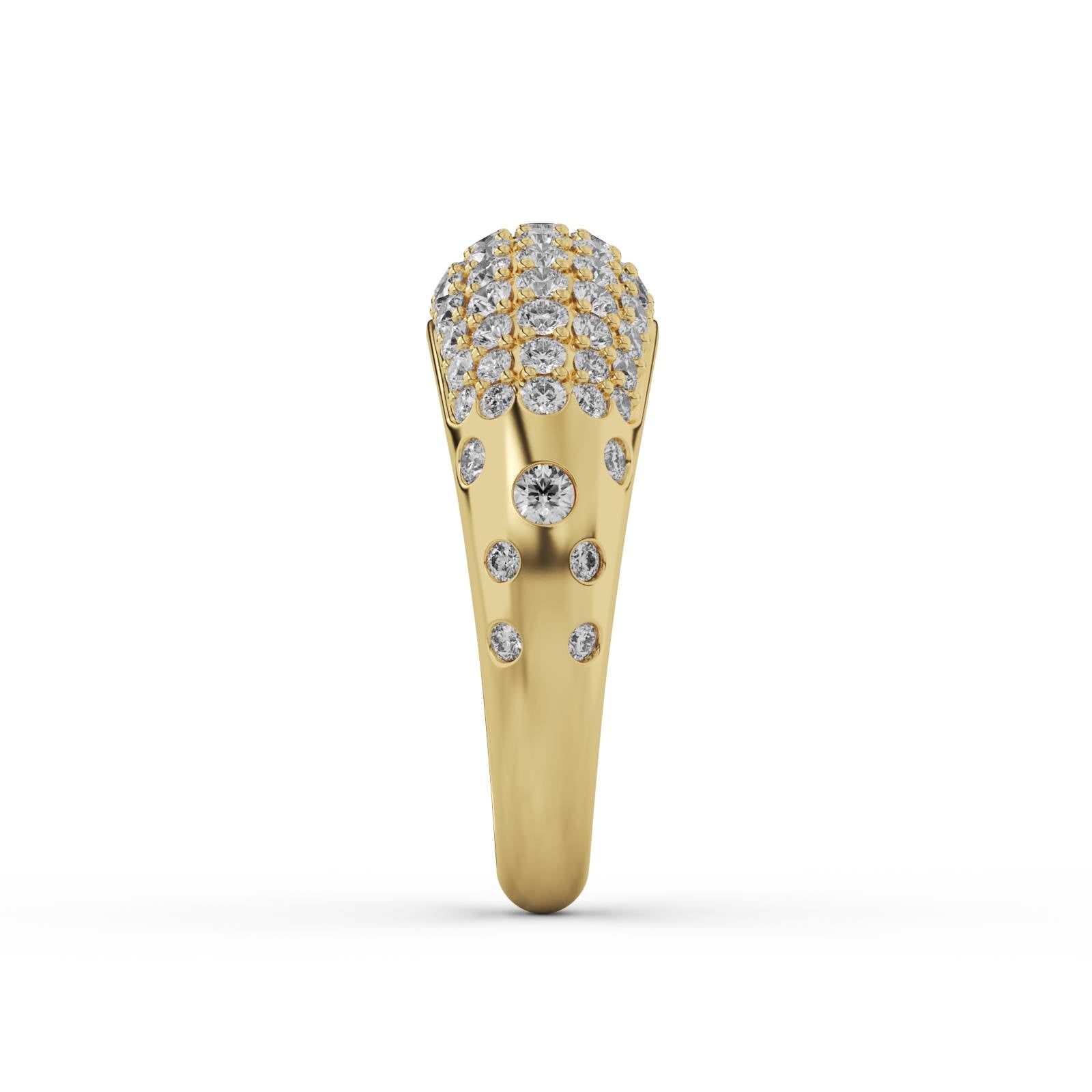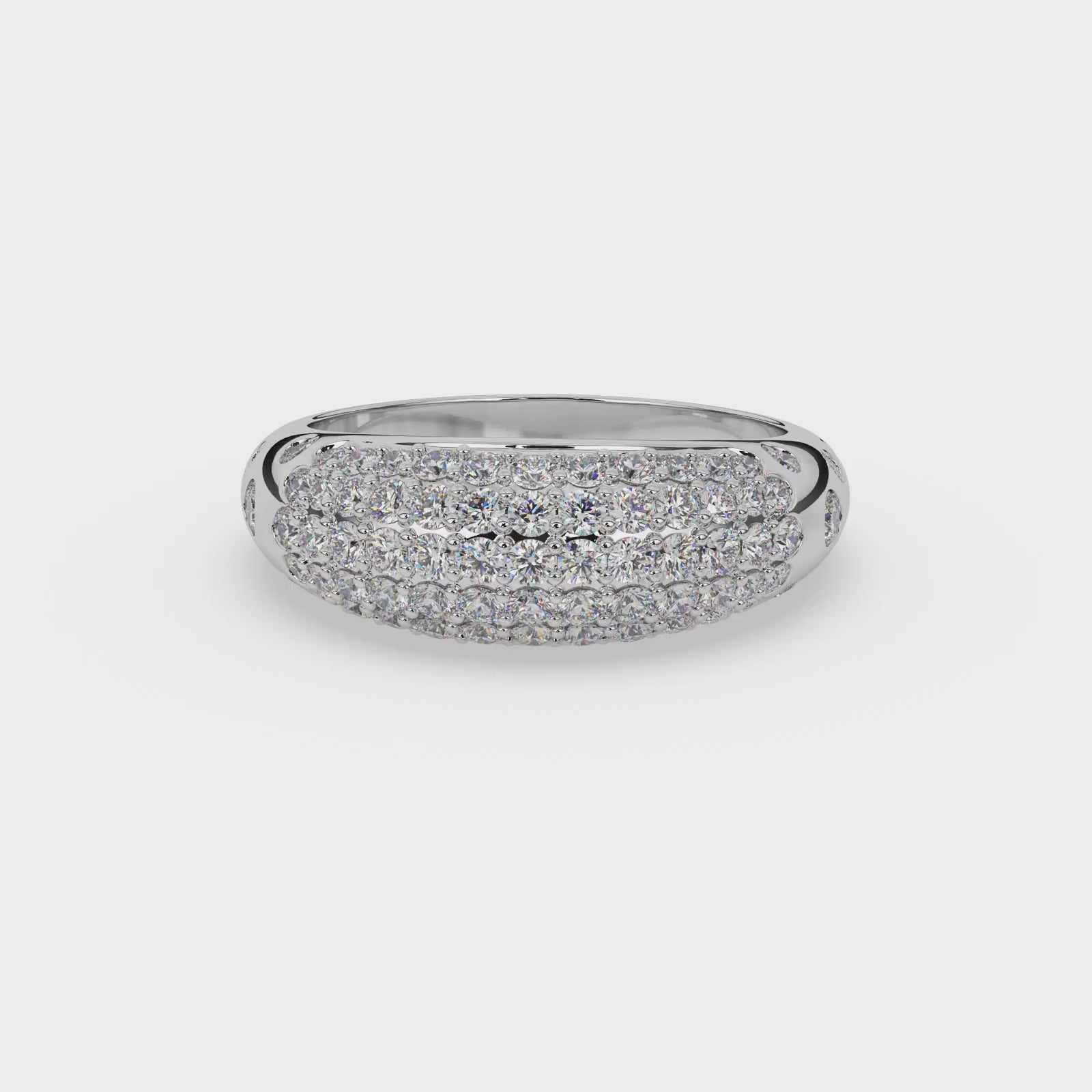 The Éclat Ring features a gently domed silhouette, meticulously hand-set with a gradient of pavé stones across its curve. Designed to reflect light from every angle, it embodies understated glamour — striking enough to stand alone, yet subtle enough to stack.