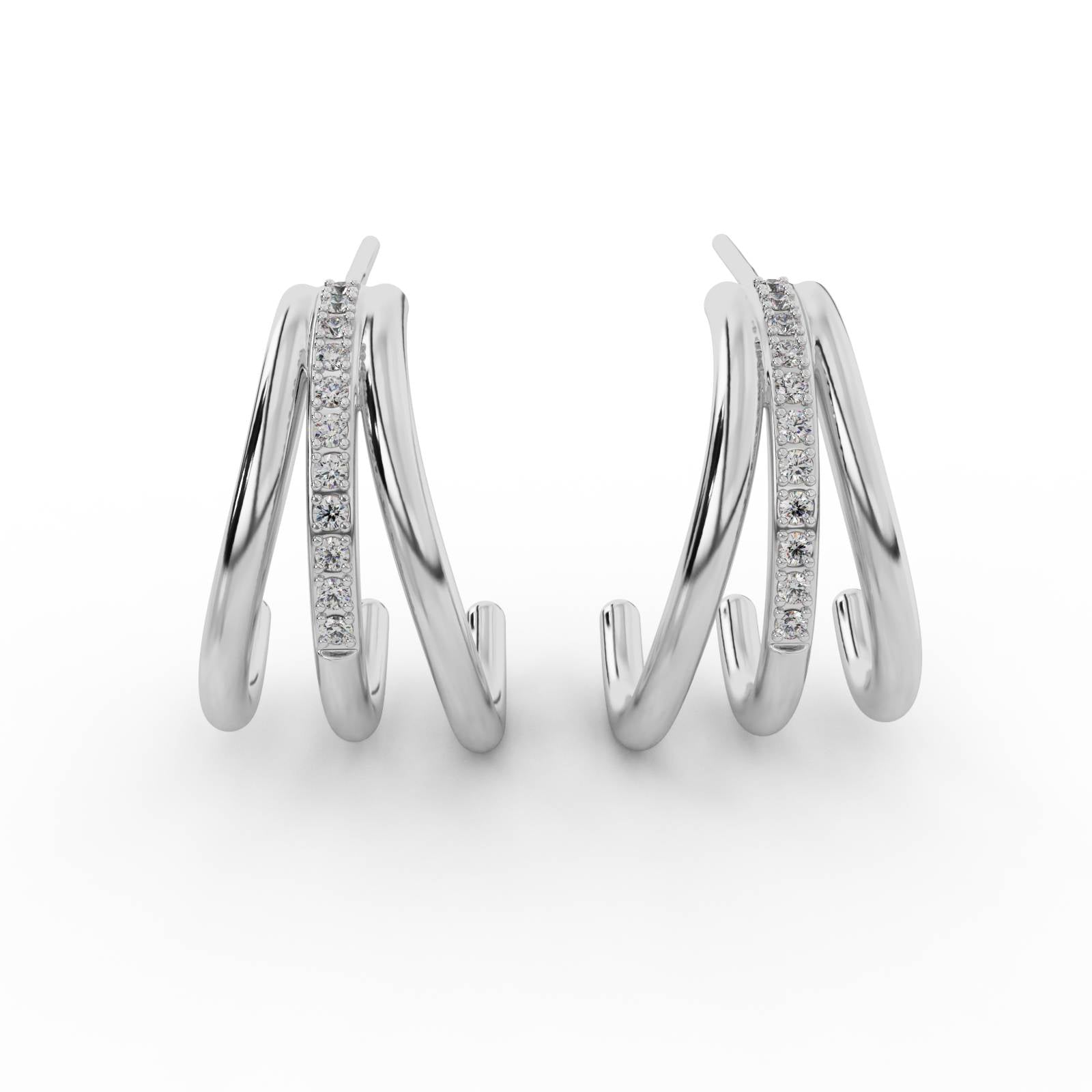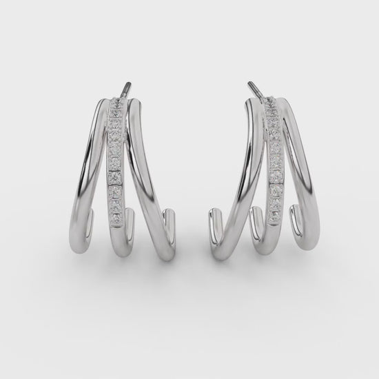 Sculptural triple-curve hoops with a central pavé line, crafted in 18k gold vermeil.