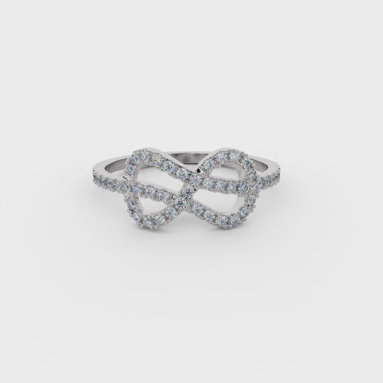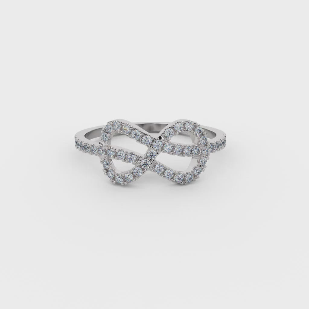 - Pavé-set interwoven design for movement + dimension