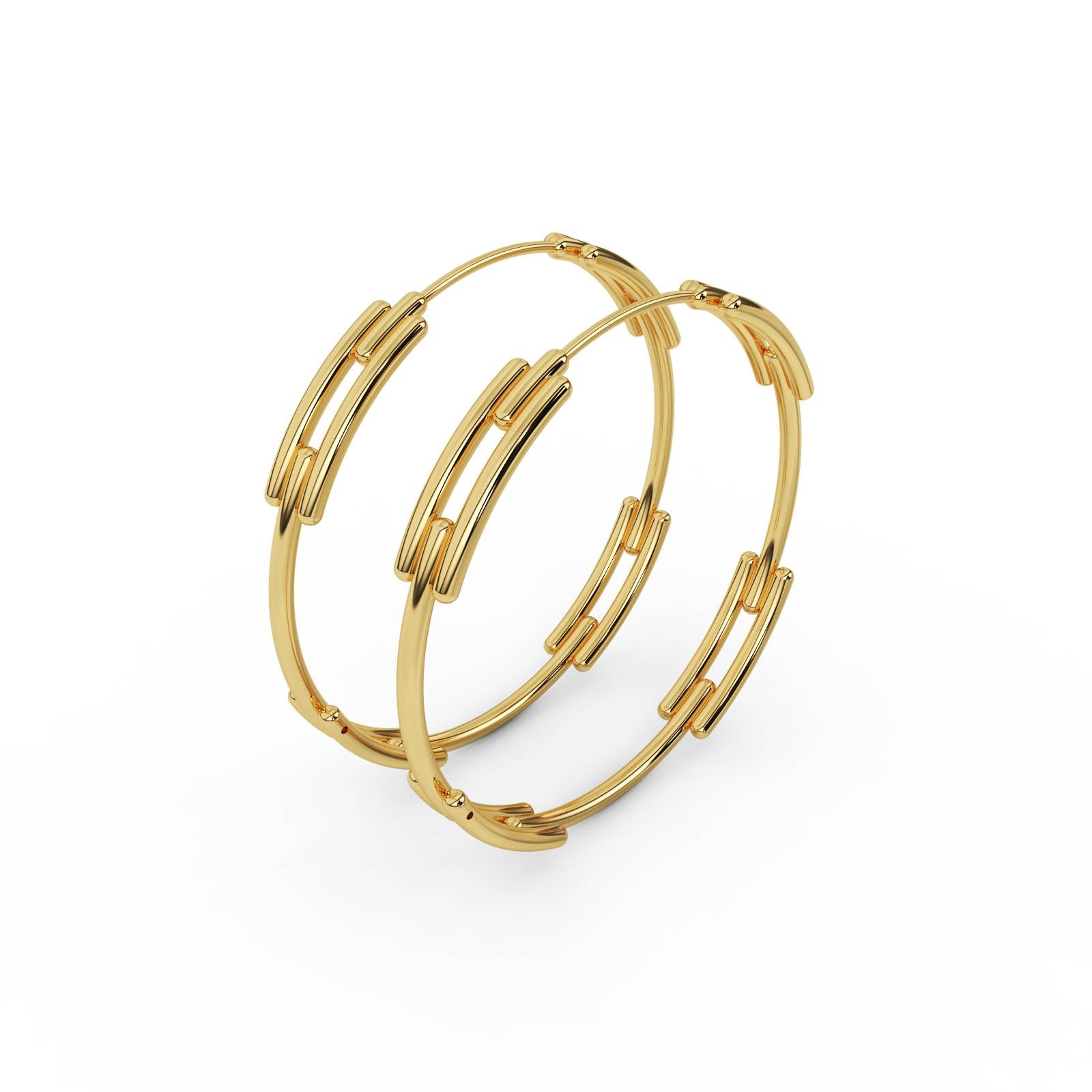 Sculptural hoop earrings with alternating metal segments, crafted in 18k gold vermeil