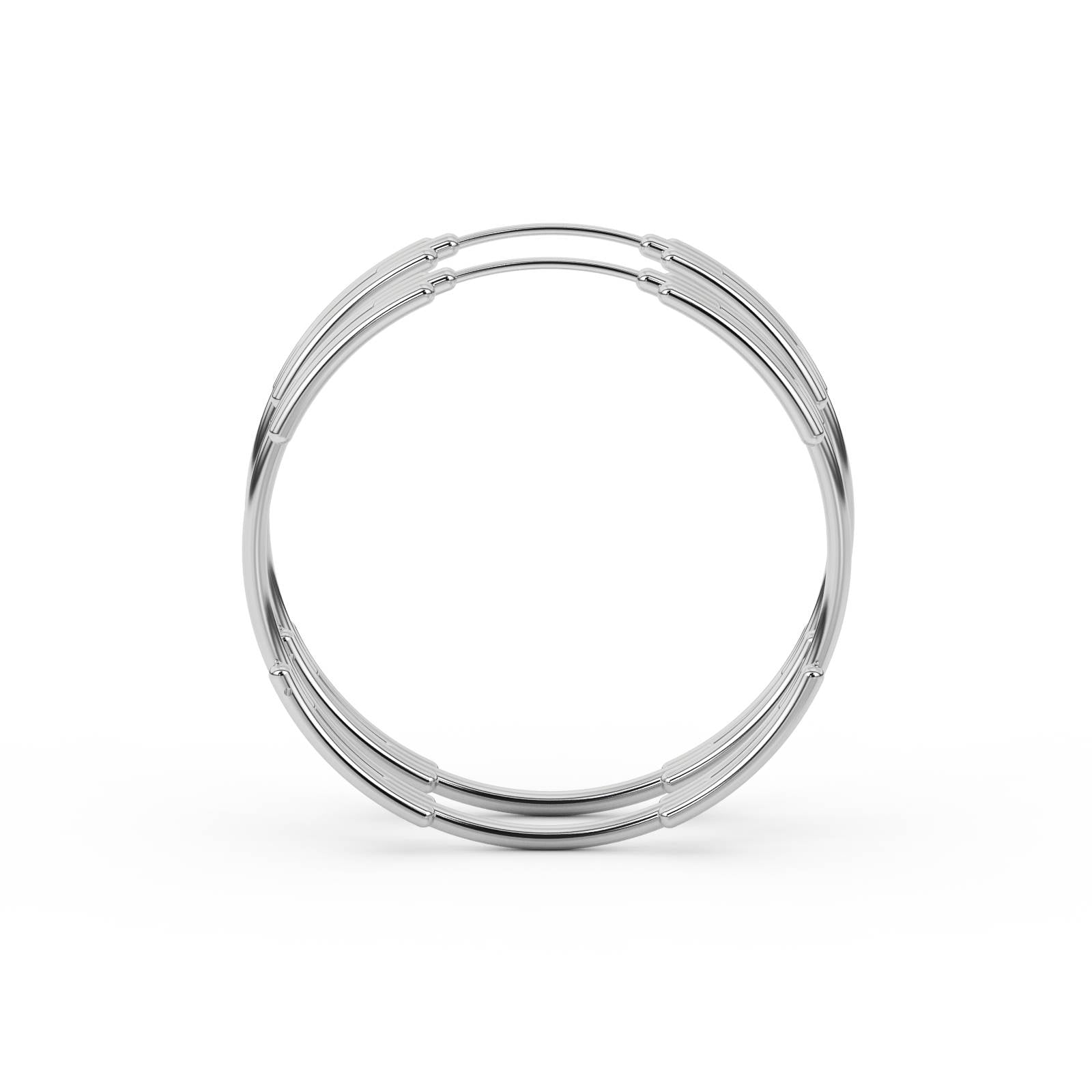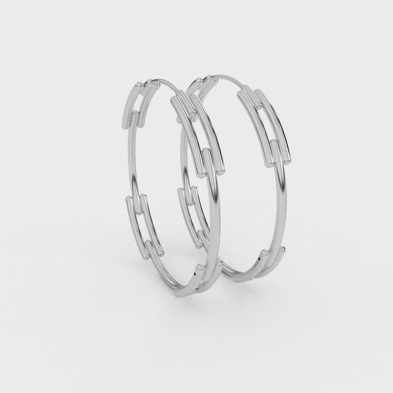 Clean lines. Distinct form. The relay Hoops feature a circular silhouette accented by smooth, evenly spaced metal segments, creating a subtle, architectural rhythm along the ear.
