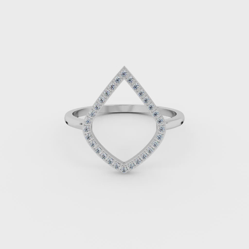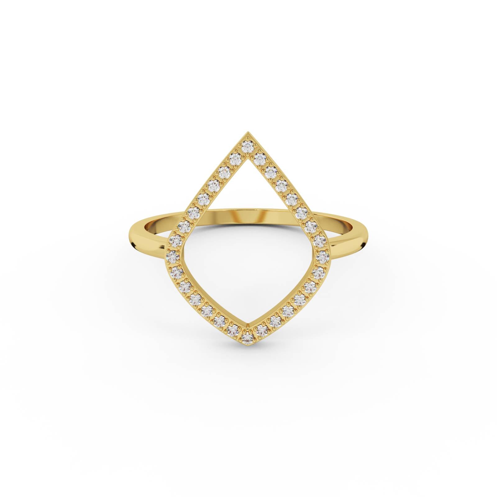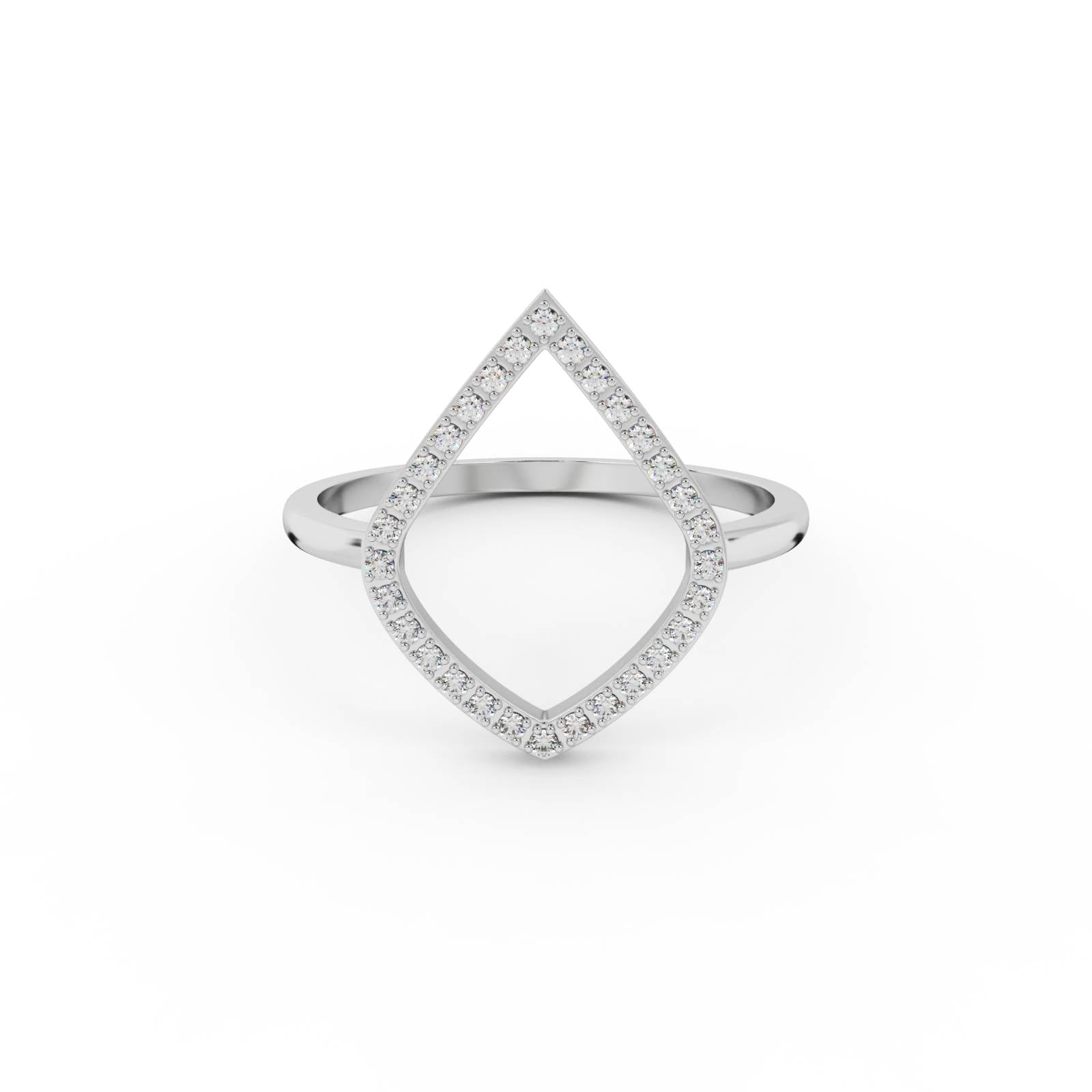 The halo outline Ring features an open, organic outline set with fine pavé stones — creating a shape that feels balanced, modern, and quietly expressive. No symbols, no clichés — just pure form and light.
